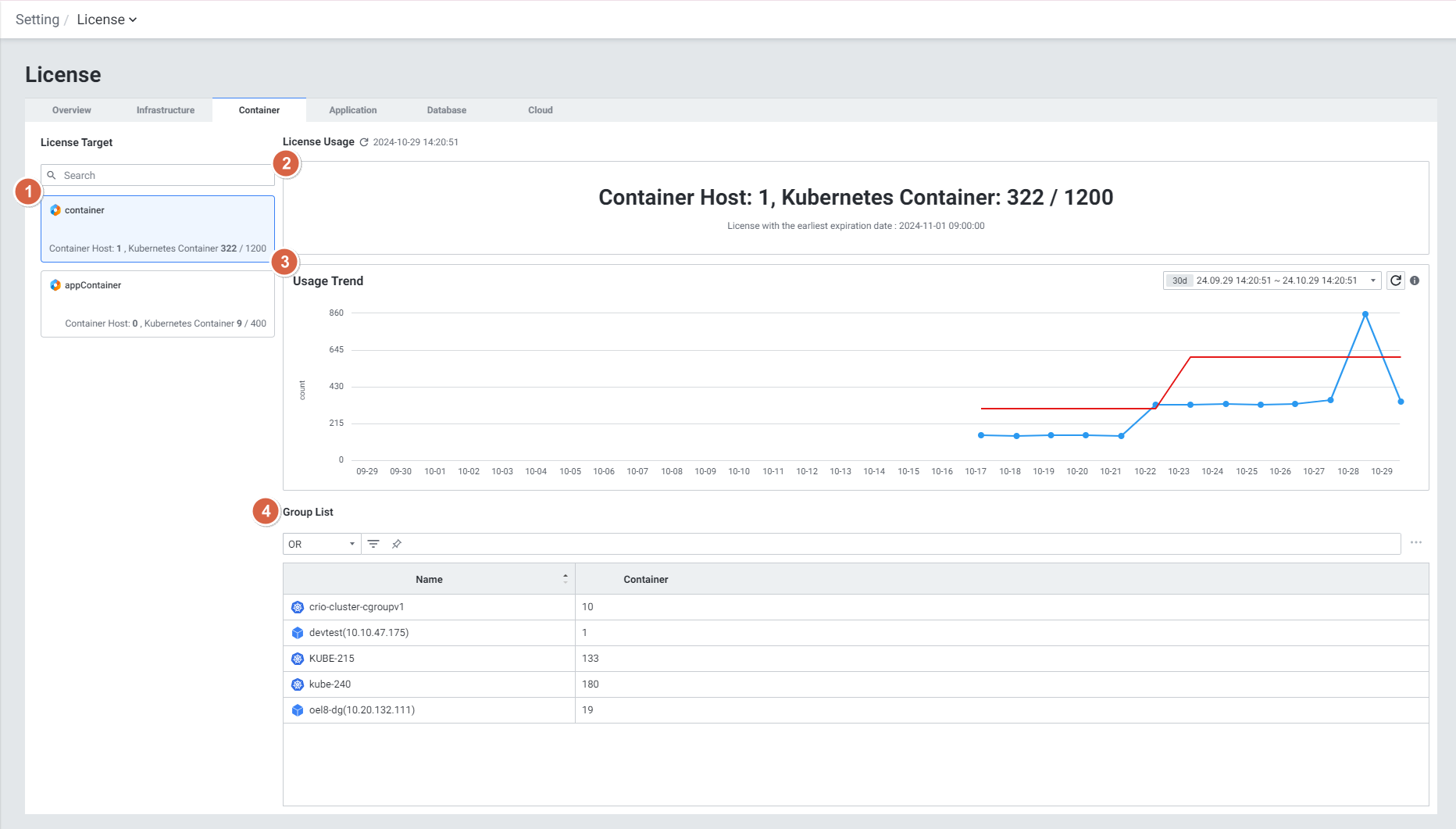 | 4 | Group List | License가 적용된 타겟 목록을 보여줍니다. |