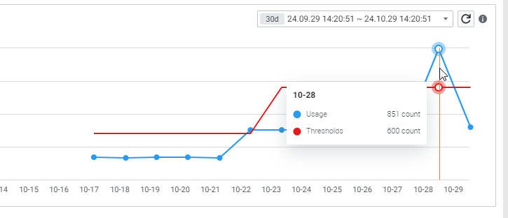 | 3 | Usage Trend | License 임계치와 사용률 변화량을 차트로 확인할 수 있습니다.![]() |