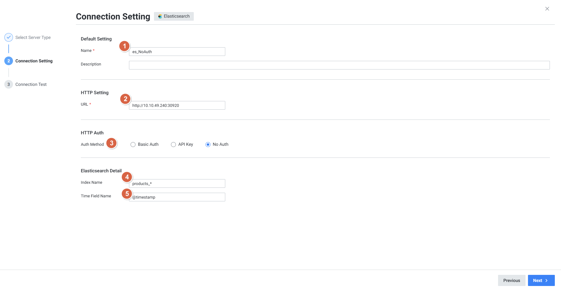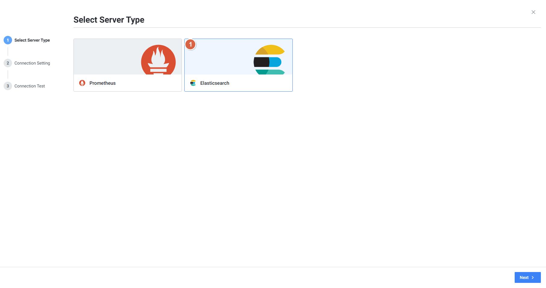 1. Select Server Type > Elasticsearch 선택하여 진행