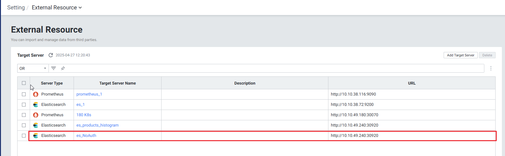 3. 저장 시, Target Server 리스트에 출력됩니다.