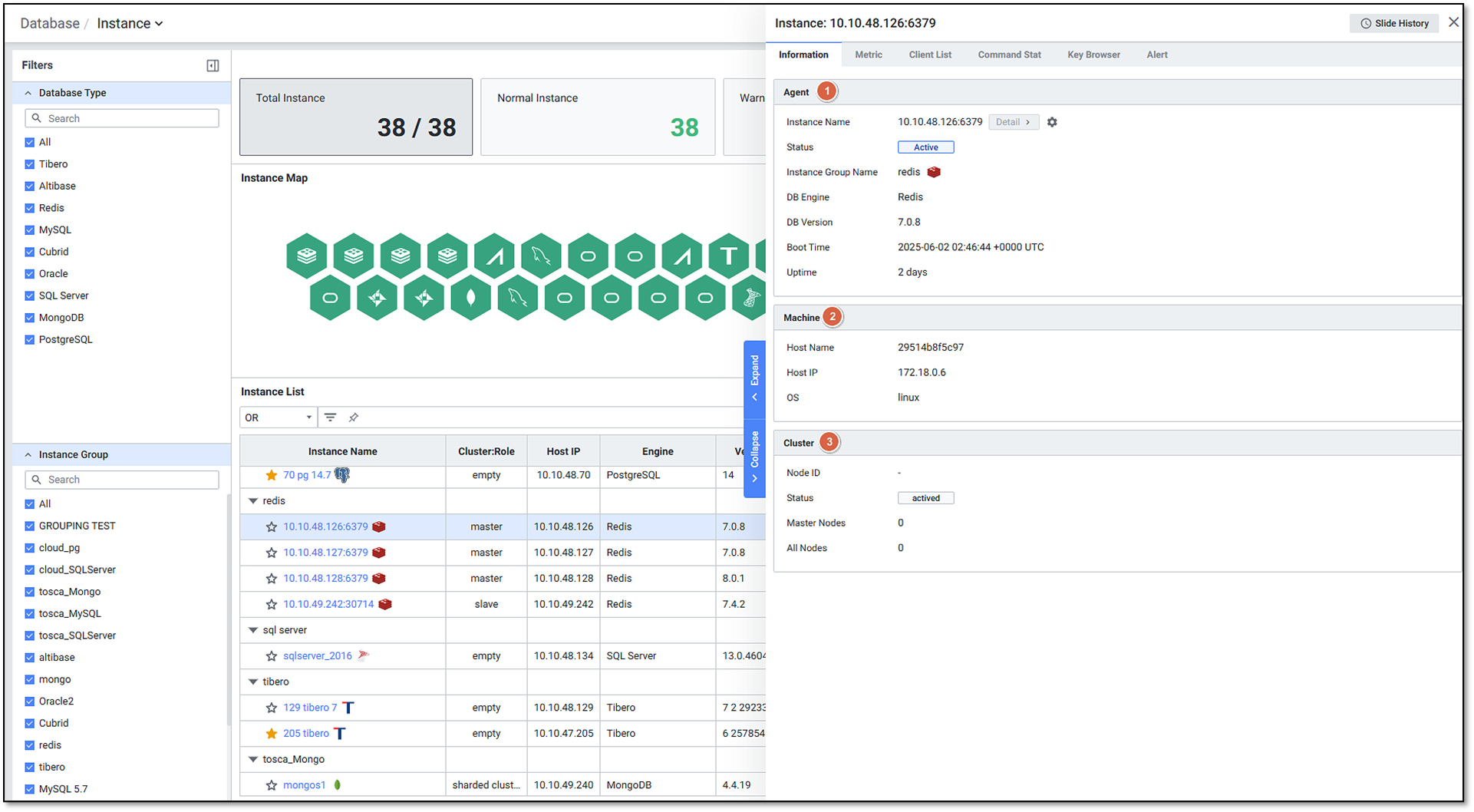 Agent: Instance Name, Status, Instance Group Name, DB Version, Last Boot Time, Uptime