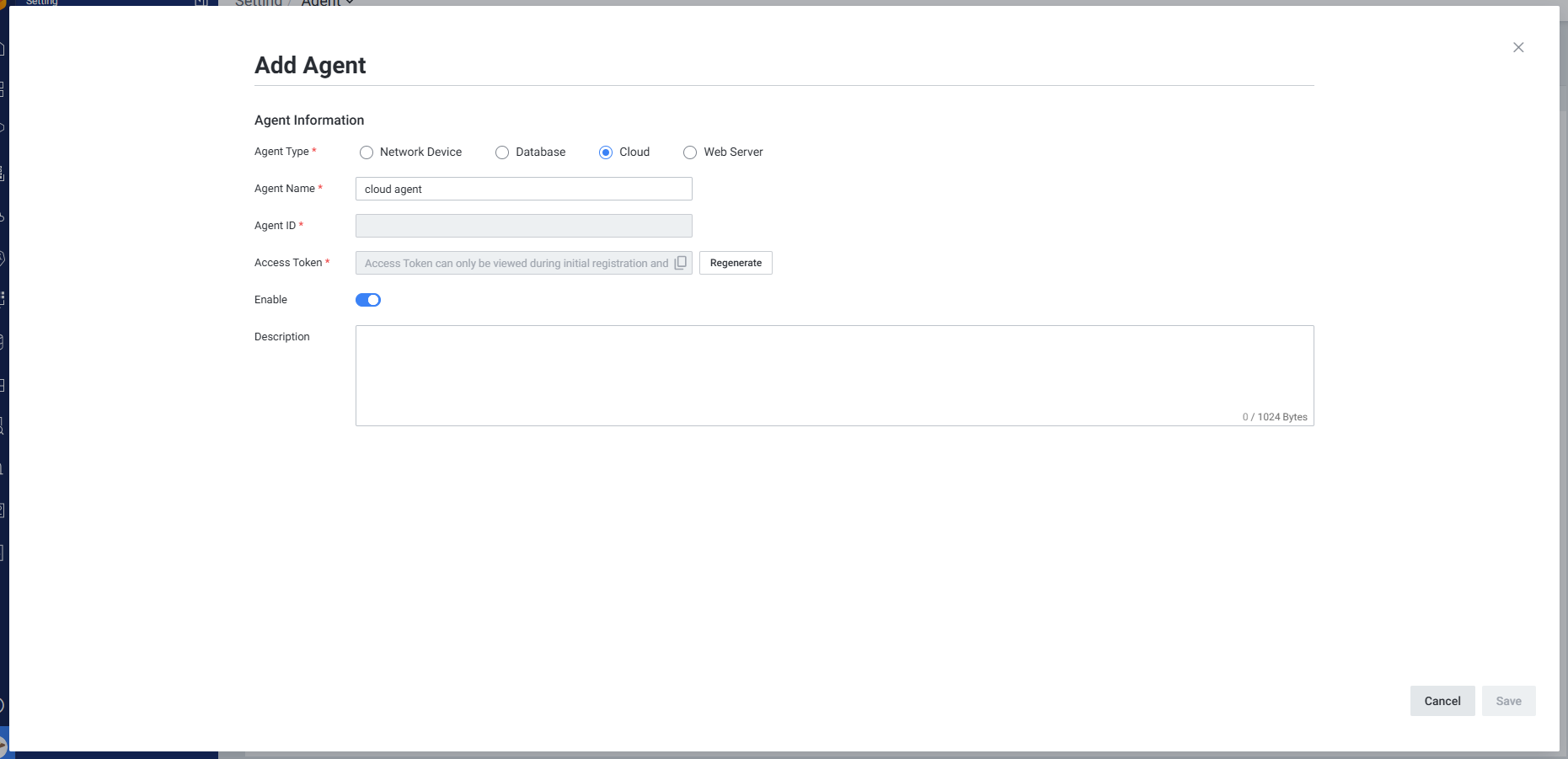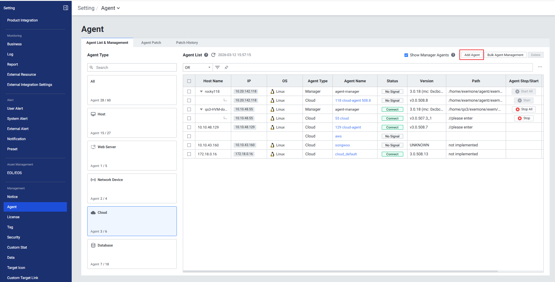 메뉴 경로: Setting > Agent > Agent List & Management > Add Agent
