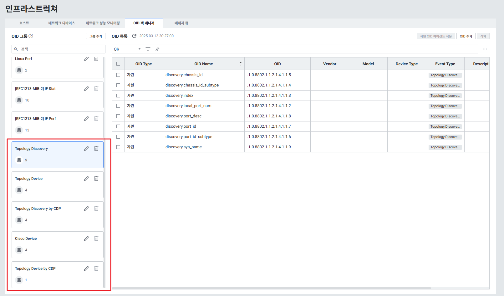 네트워크 디바이스 모니터링 시: OID 리소스 추가 및 네트워크 디바이스 수집 설정이 필요합니다.