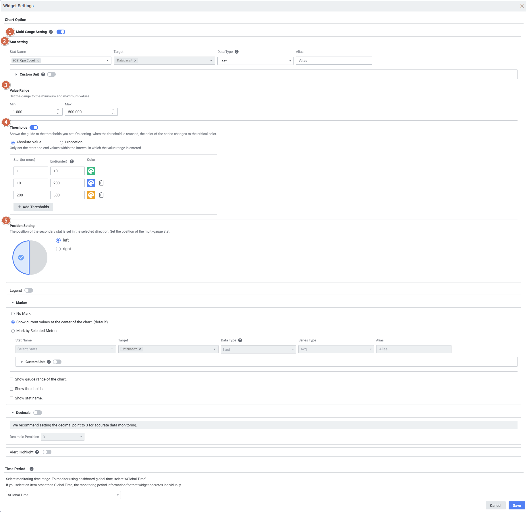 | 5 | Position Setting | 해당 게이지 차트의 위치를 선택합니다. |