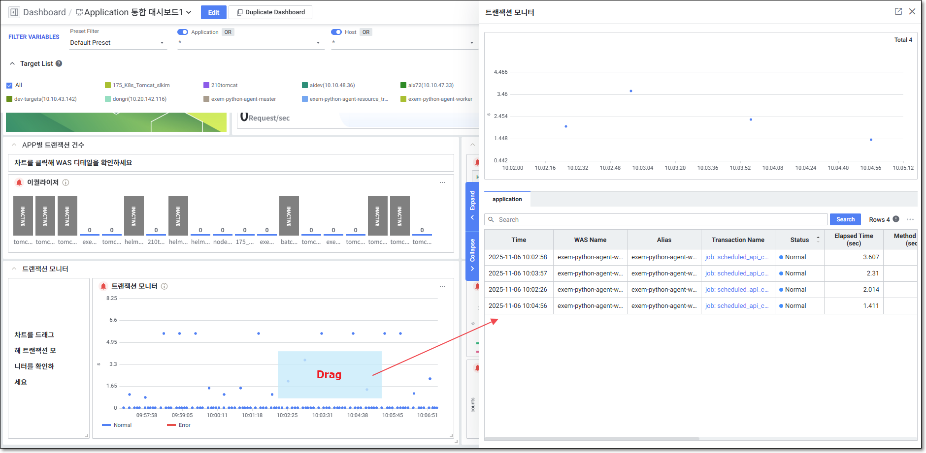 | Chart Target > Target Type | Node, Pod, Container, Application, Database, Host, Network Device, AWS 등 선택 |
