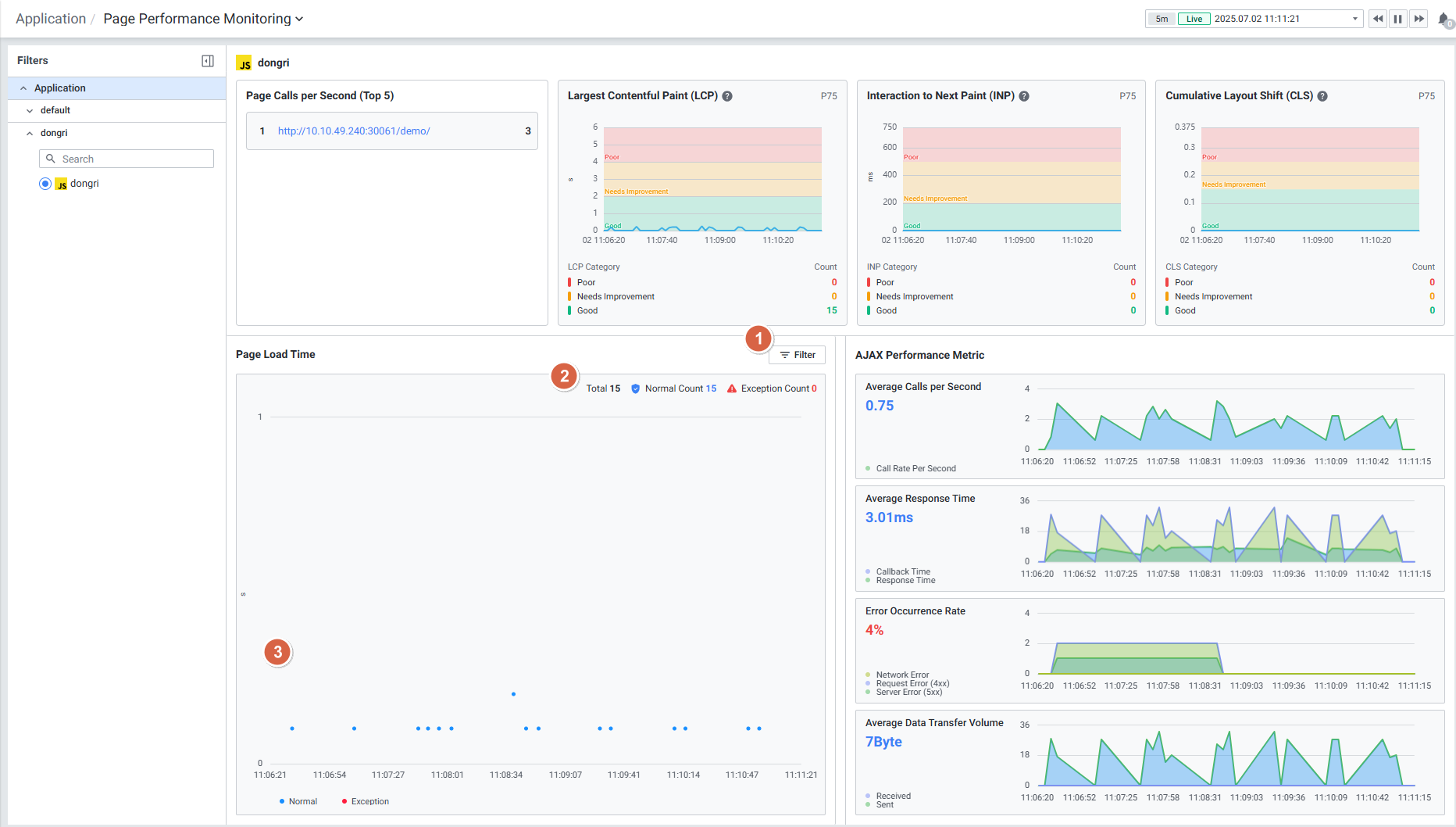 | 2 | Status Count | 페이지 로드 결과에 대한 상태(합계, 정상, 예외) 별 집계 건 수를 보여줍니다. |