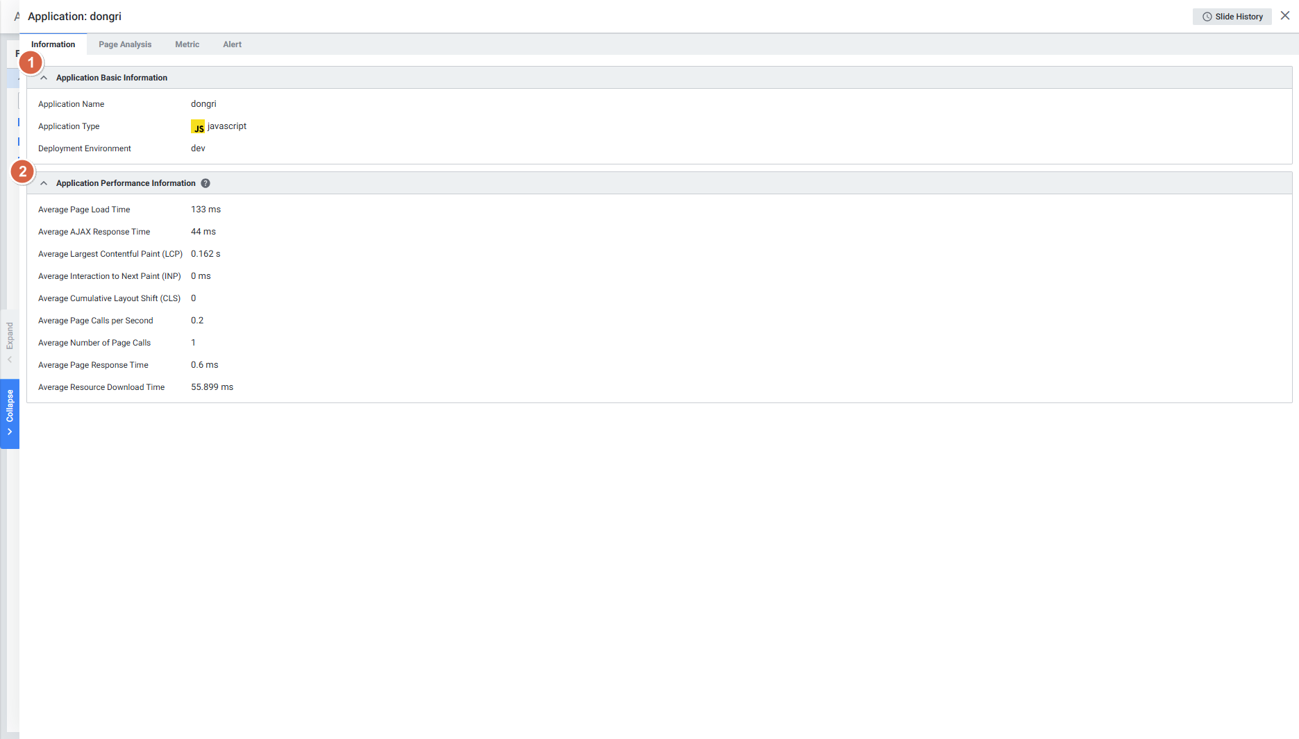 2Application Performance Information애플리케이션의 항목 별 실시간 추이 데이터를 확인할 수 있습니다.
