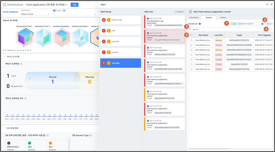 | 5 | Current | 실시간 발생한 Alert 목록을 보여줍니다. |