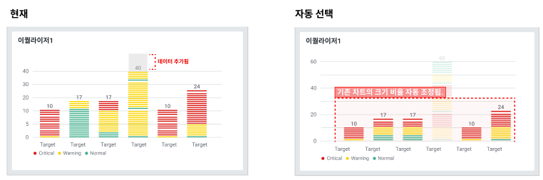 Axis Auto: 최대값을 자동으로 설정합니다. value의 최대값에 따라 그래프의 비율이 자동 조정됩니다.