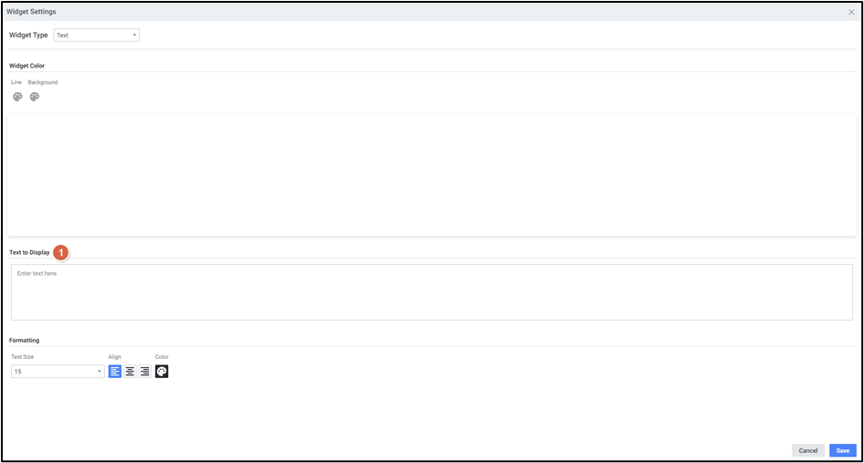 Text Widget을 설정하는 화면입니다. 해당 위젯에 특화된 기능만 기재되어 있습니다. 공통 기능은 Widget Setting Common UI를 참고하세요.