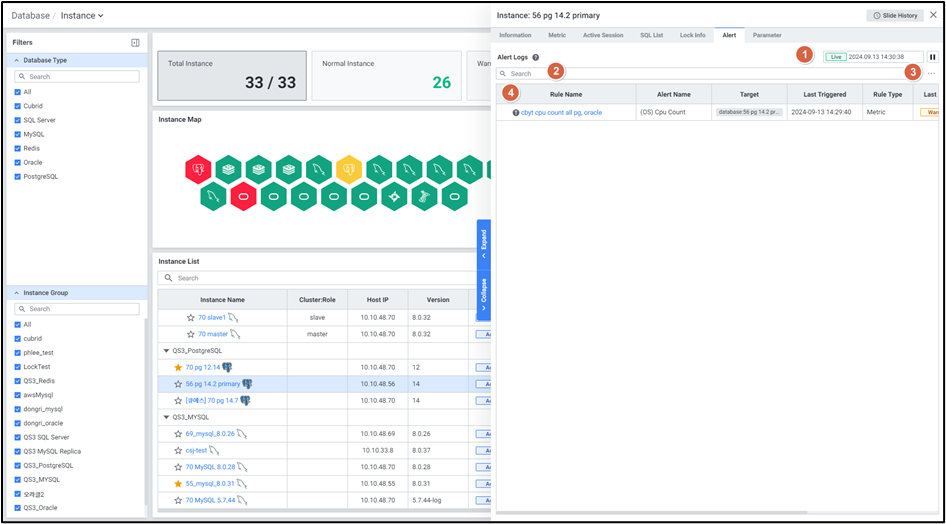 | 4 | Alert Logs | Alert 로그의 목록을 Grid로 보여줍니다. |