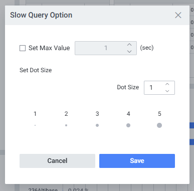 | 2 | Set Dot Size | Slow Query 차트를 그릴 점의 크기를 1~5 크기로 설정할 수 있습니다. |
