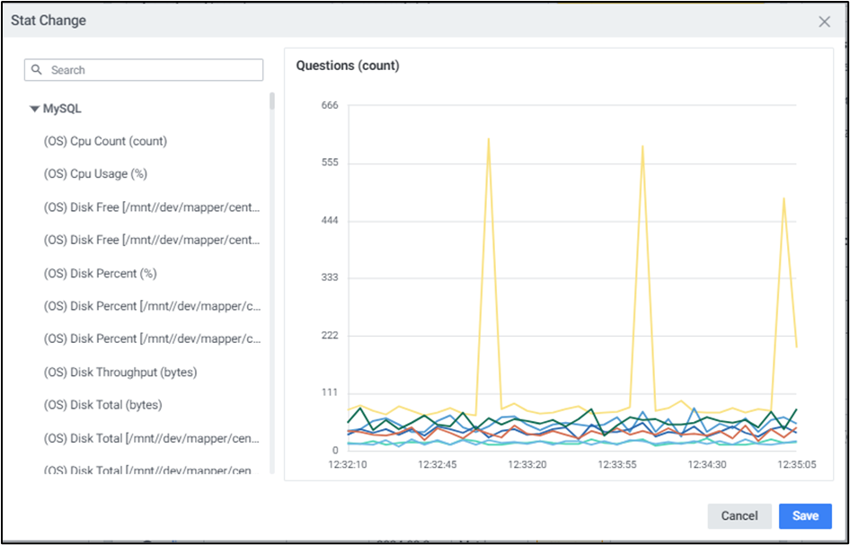 를 클릭하여 지표를 변경할 수 있습니다. ‘Stat Change’ 팝업창에서 지표 변경 및 차트 옵션을 선택하여 지표를 변경합니다.
