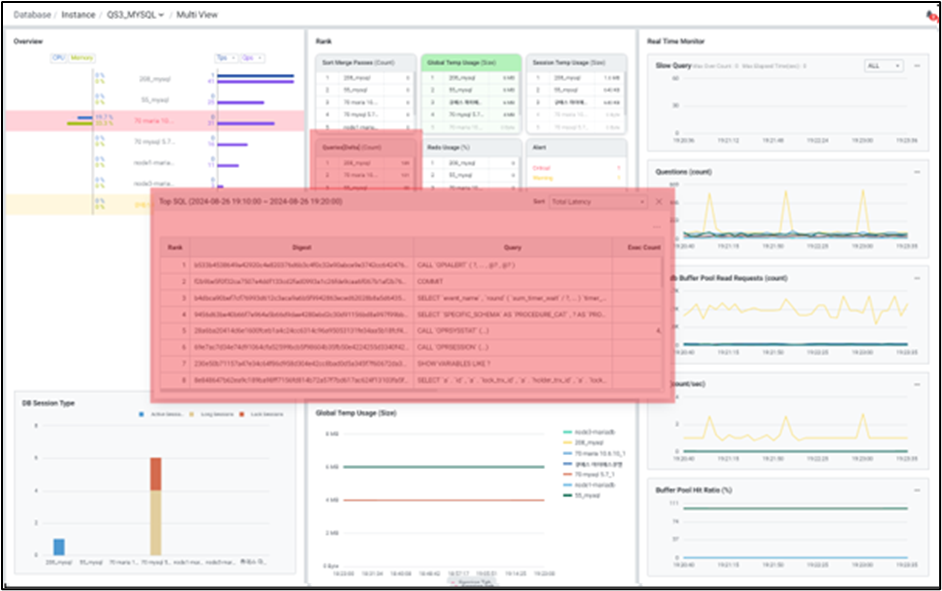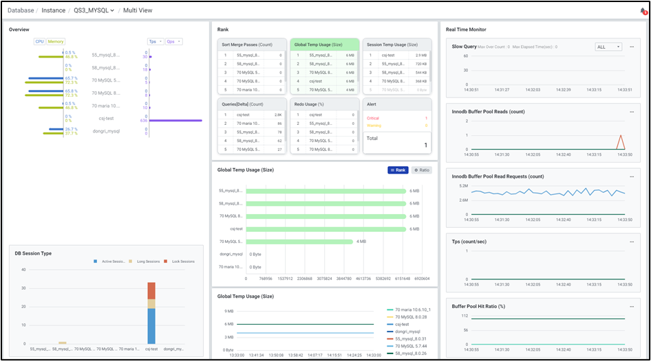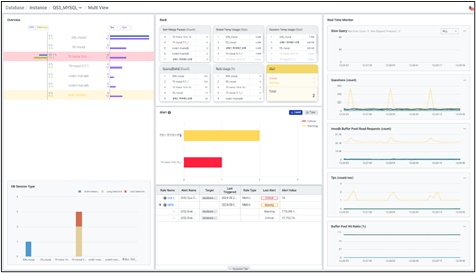 멀티 데이터베이스 모니터링을 지원하며 우측 상단에서 원하는 인스턴스만 모니터링이 가능하도록 선택할 수 있습니다.