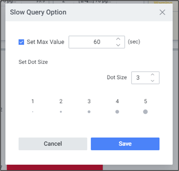 | 2 | Set Dot Size | Slow Query 차트를 그릴 점의 크기를 1~5 크기로 설정할 수 있습니다. |