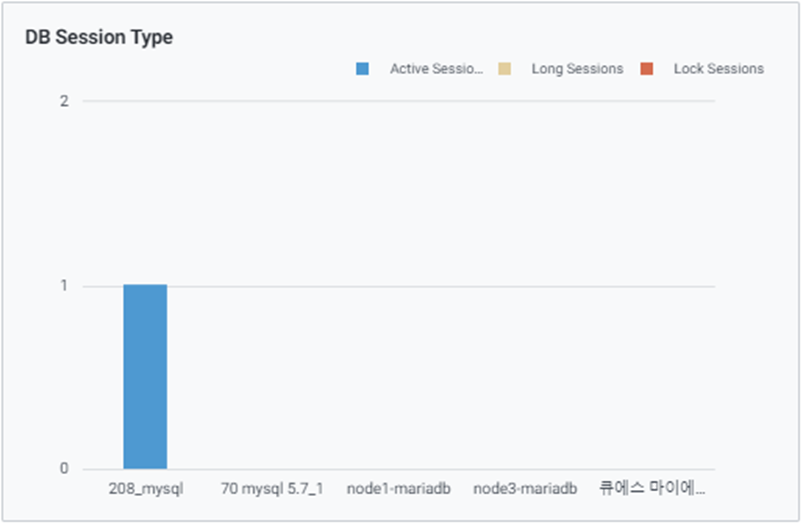 Active Session, Long Session, Lock Session을 색상으로 구분하여 실시간으로 각 Session 상태 별 분포를 통해 데이터베이스에서 진행중인 작업의 형태와 waiting 여부를 판단할 수 있습니다.