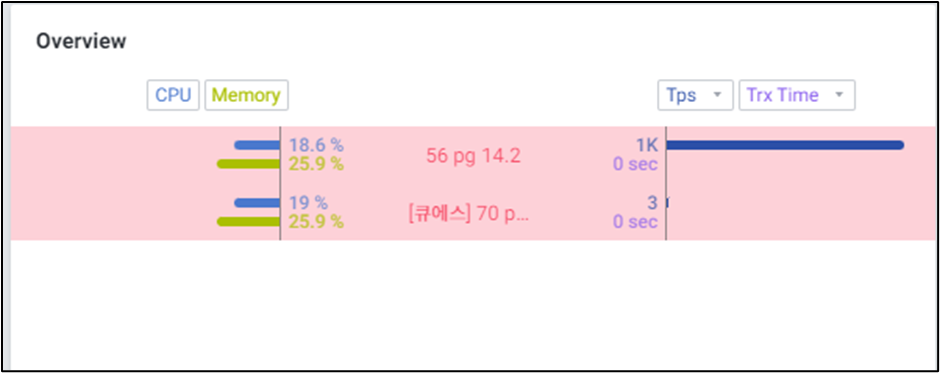 Slow Query 타이틀 영역에서는 Max 값이 넘는 Query 수와 Slow Query 중 가장 수행시간이 긴 Query의 시간을 확인할 수 있습니다.