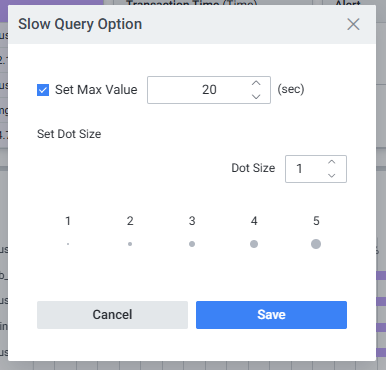 2Set Dot SizeSlow Query 차트를 그릴 점의 크기를 1~5 크기로 설정할 수 있습니다.