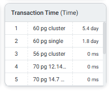 3-5) Transaction Time (Time) 트랜잭션이 실행된 시간이 긴 세션을 보여줍니다. 인스턴스 클릭 시 Session 정보를 자세히 확인할 수 있는 ‘Session Detail’ 팝업창으로 연계됩니다.