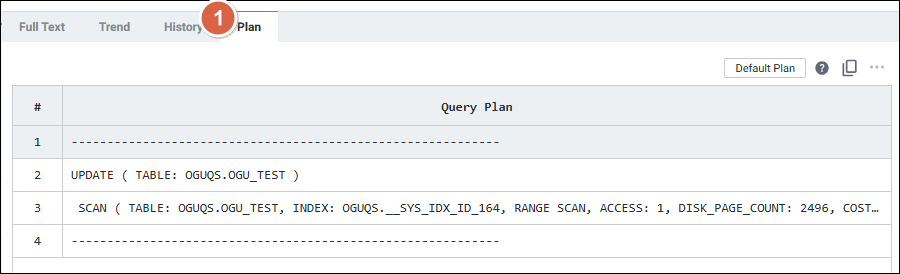 | 1 | Plan | 조회한 SQL의 Plan를 보여줍니다. |