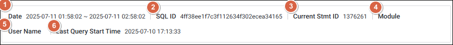 | 6 | Last Query Start Time | 마지막으로 쿼리가 실행된 시간입니다. |