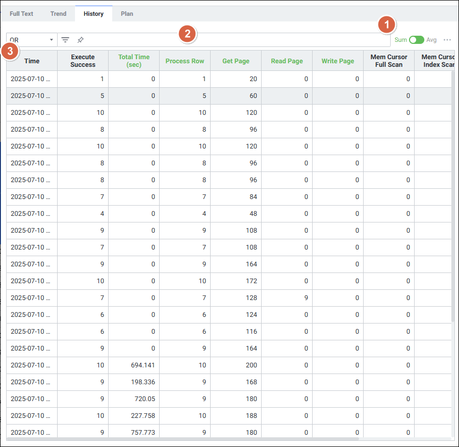 | 1 | Trend | 조회한 SQL의 성능 추이를 보여줍니다. |