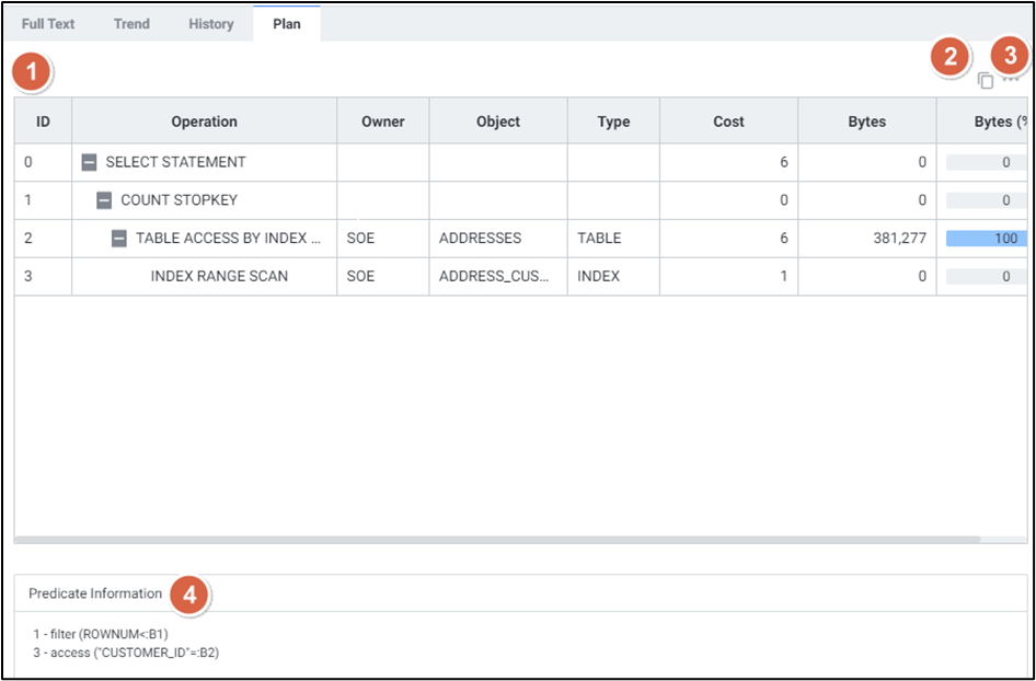 | 4 | Predicate Information | Plan 수행 시 Access/Filters 방식에 대한 정보를 제공합니다. |