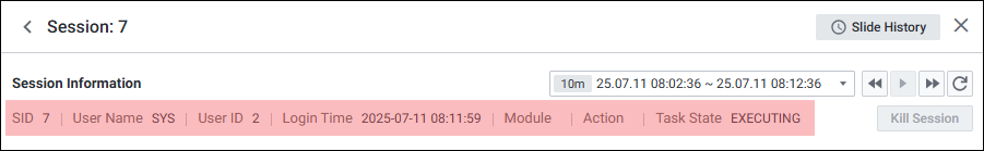 | 6 | Kill Session | 현재 실행중인 Session을 종료하는 기능입니다. |