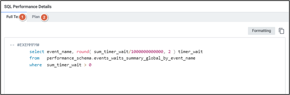 1Full TextActive Session History에서 선택된 SQL ID의 Full Text를 보여줍니다.