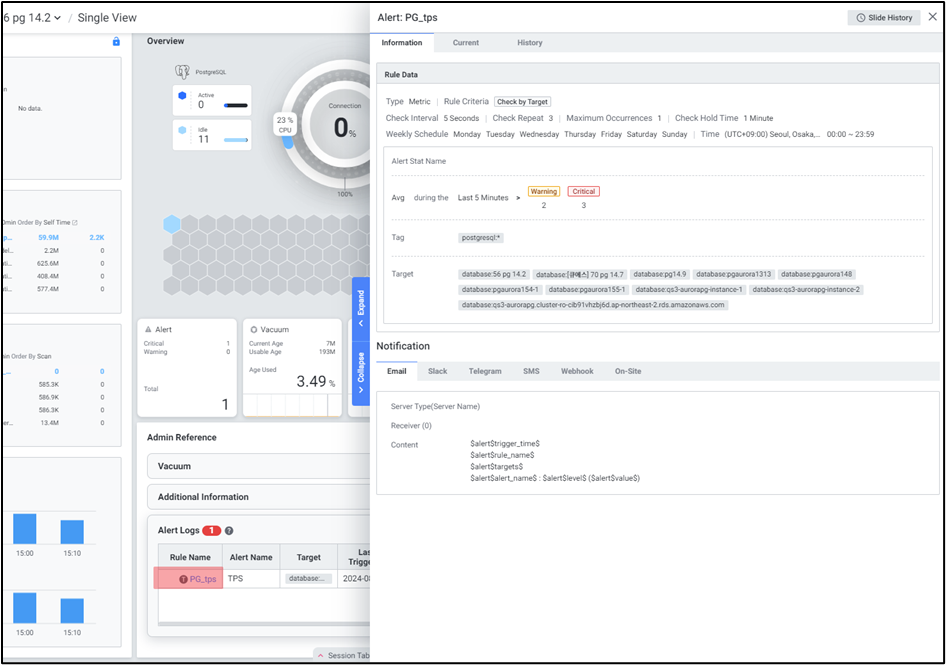 - 사용자 Alert, Vacuum, Replication, Checkpoint 등 주요 관리 포인트를 확인합니다.