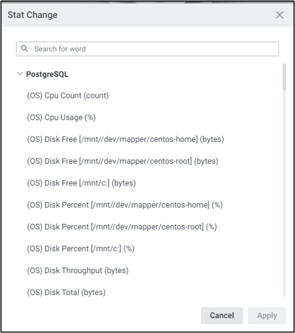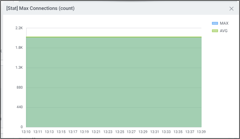 Statistics row 클릭 시 성능지표의 30분 이전부터 현재 시간까지의 1분 Summary max, avg 값을 팝업 차트로 볼 수 있습니다.
