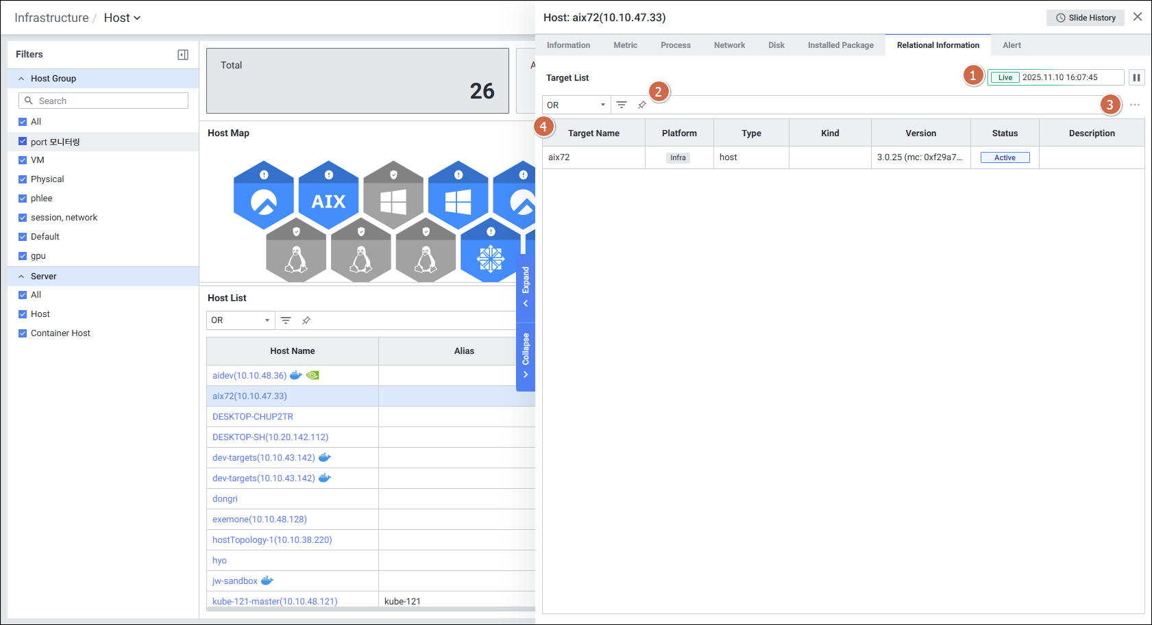 Host Detail Slide의 Relational Information을 확인하는 화면입니다.