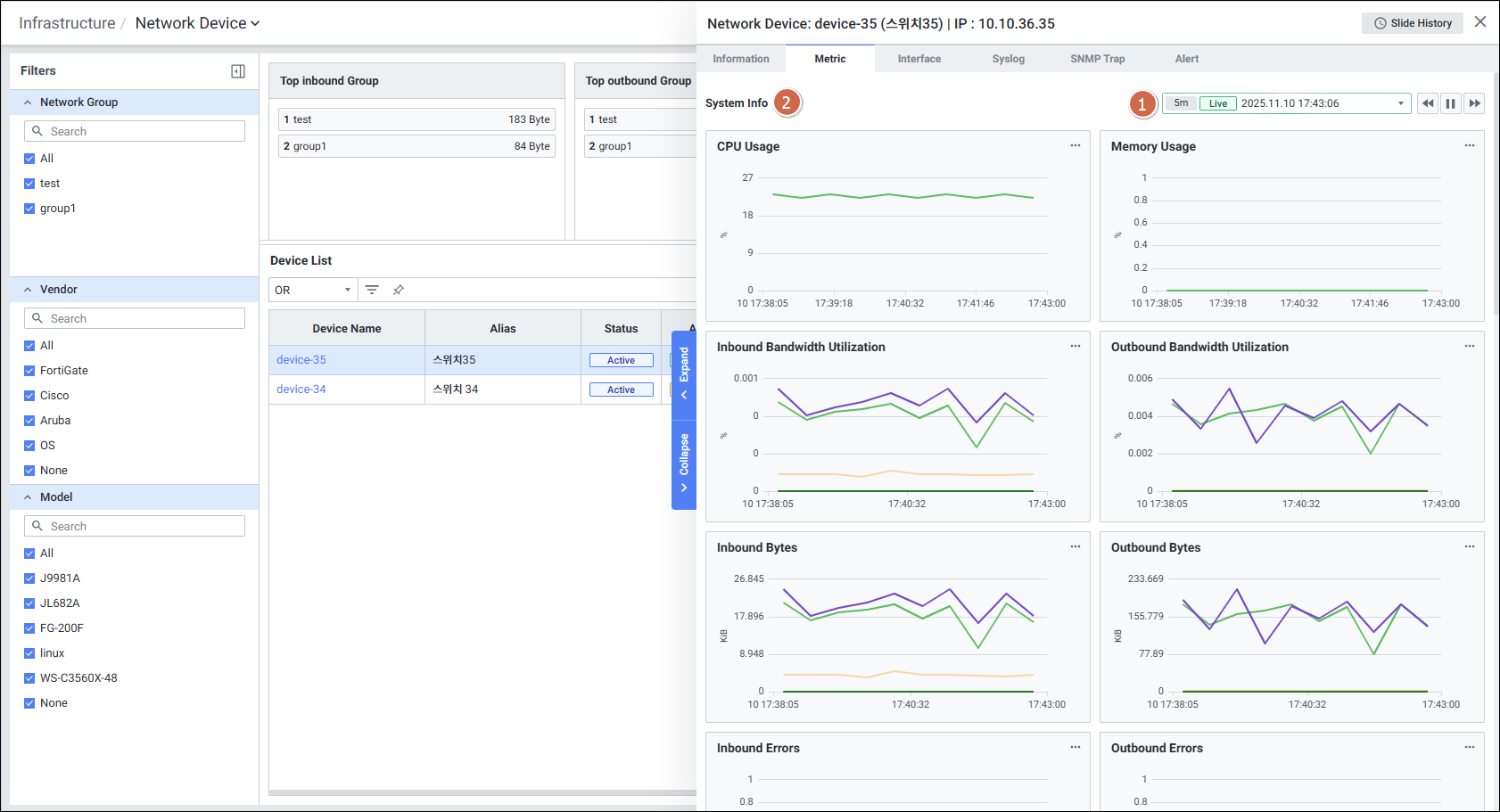 Network Device Detail Slide의 Metric정보를 확인하는 화면입니다.