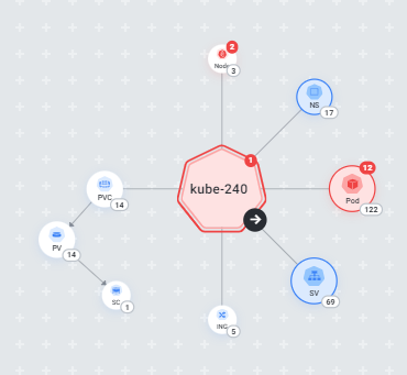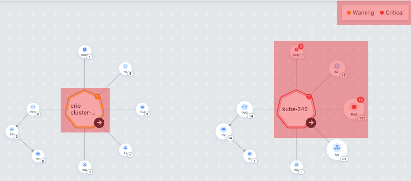 | 6 | Object Status | 클러스터 객체 별 상태에 따라, 알람 발생 수 집계되어 표시됩니다. Warning: 노란색, Critical: 빨간색 ![]() |