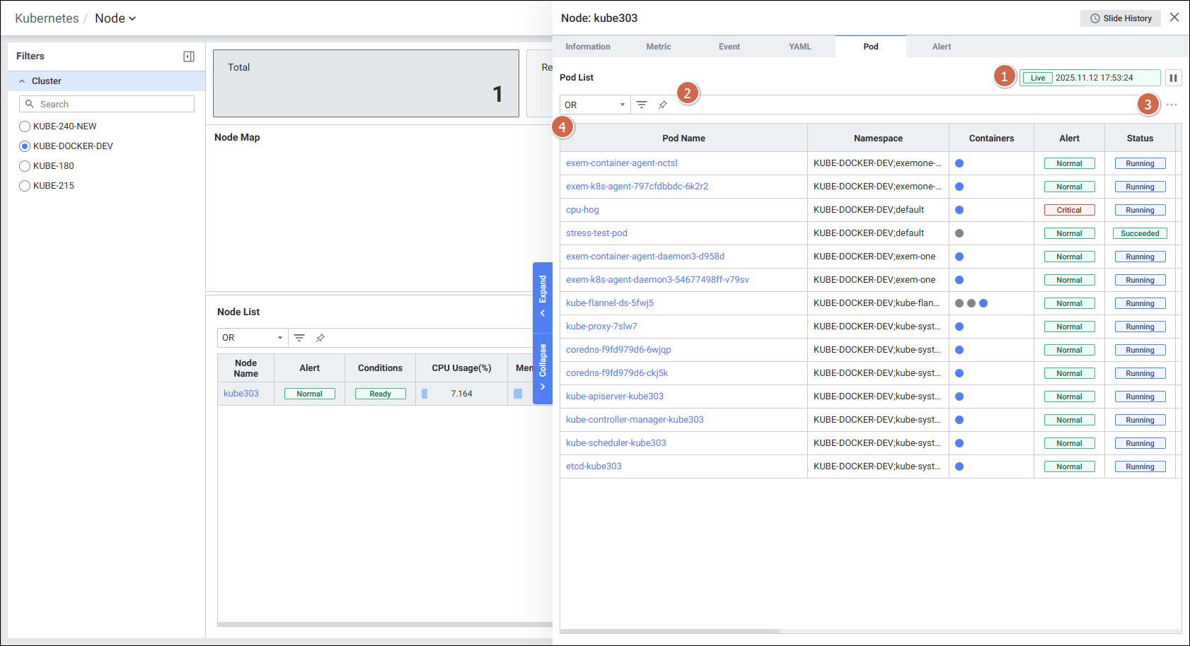 1Pod Name파드의 이름 (클릭 시 4.4.4. Pod Detail Slide 오픈)