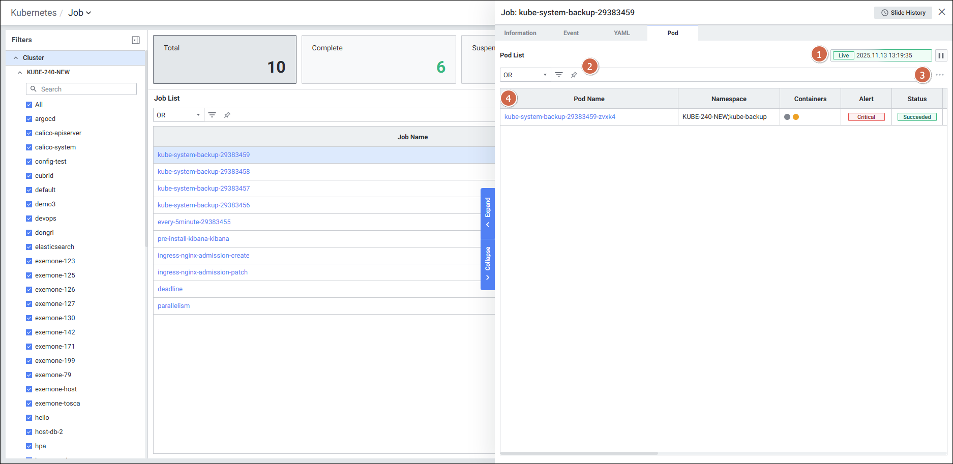 | 1 | Pod Name | 파드의 이름 (클릭 시 4.4.4. Pod Detail Slide 오픈) |