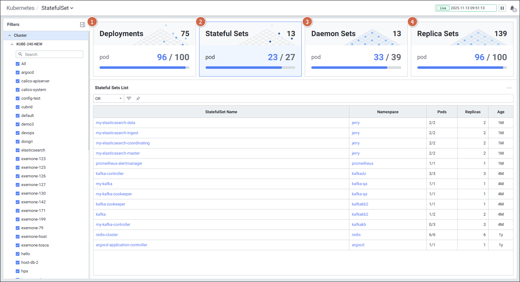 2Stateful SetsStatefulSet의 목록 개수를 보여줍니다.
