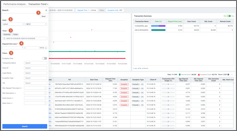 4Elapsed time (sec)트랜잭션 경과 시간 조건을 입력합니다. (default:1)