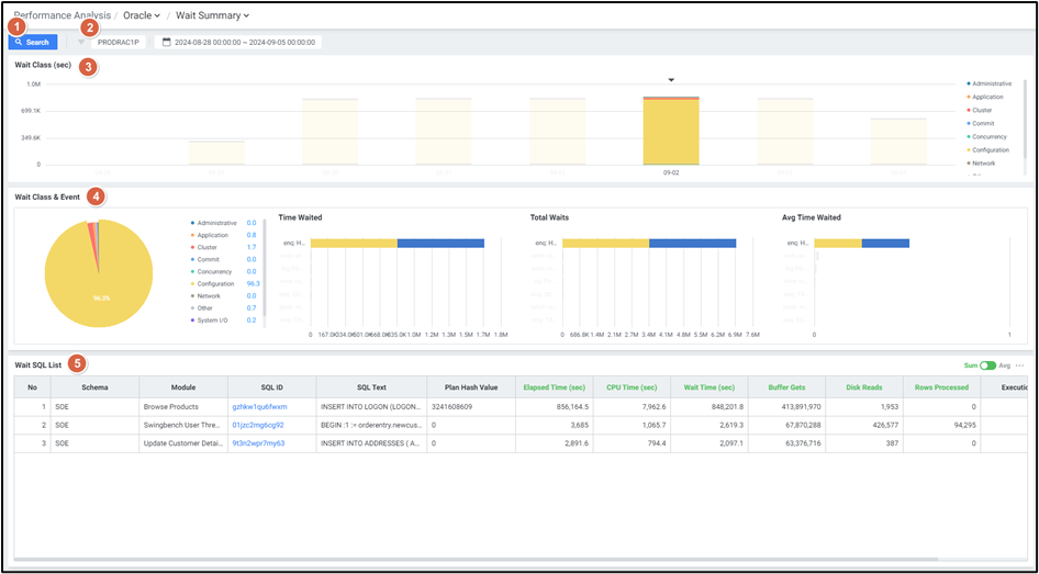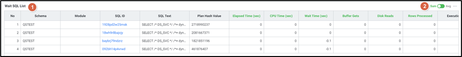 5Wait SQL ListWait Event에서 선택한 값을 Wait SQL List 의 Grid형태로 보여줍니다.