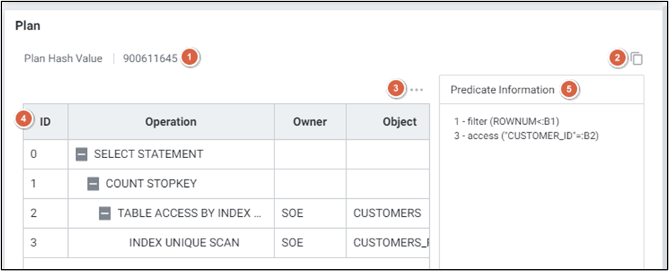 | 5 | Predicate Information | Plan 수행 시 Access/Filters 방식에 대한 정보를 제공합니다. |