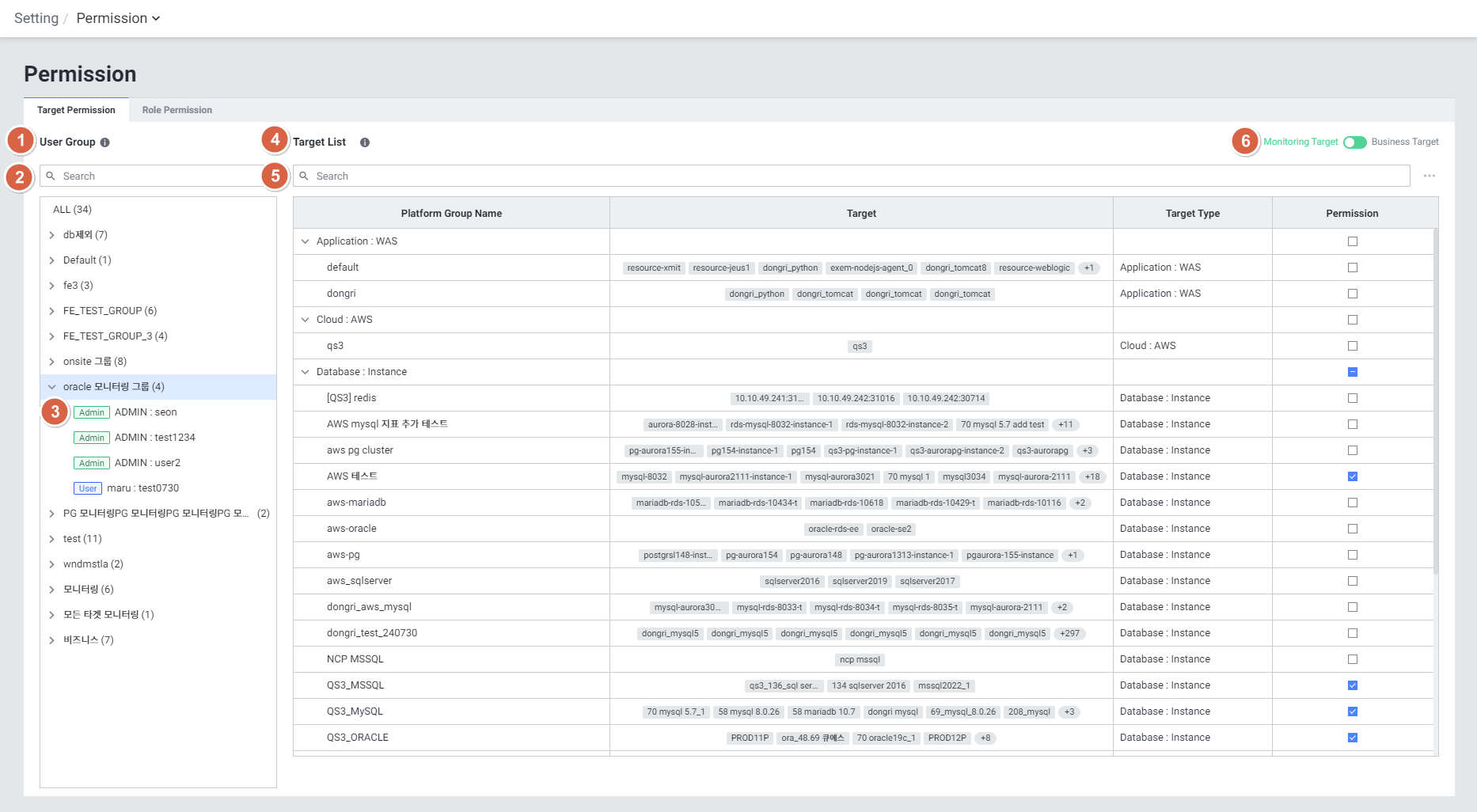 6ToggleMonitoring Target: 타겟 별 권한을 설정합니다.