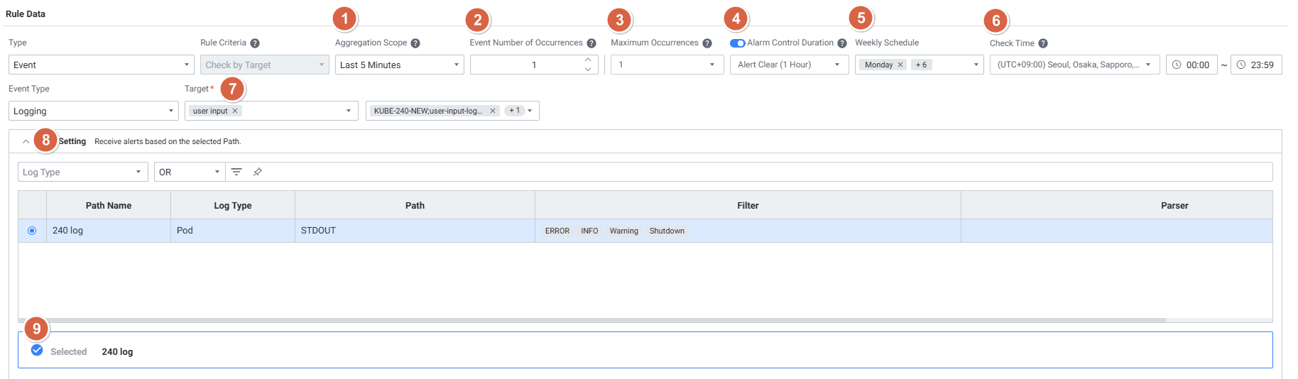 7TargetAlert을 수신할 Logging을 선택합니다.