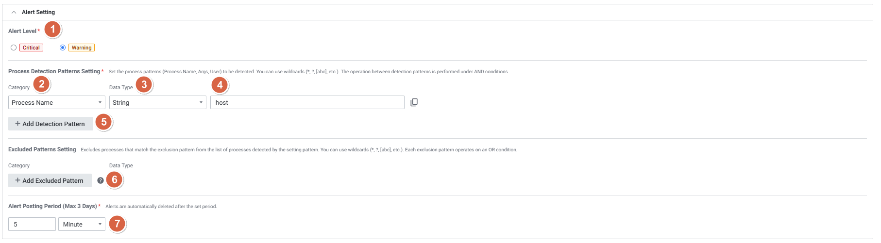 3Excluded Patterns Setting프로세스 제외 조건을 설정합니다.