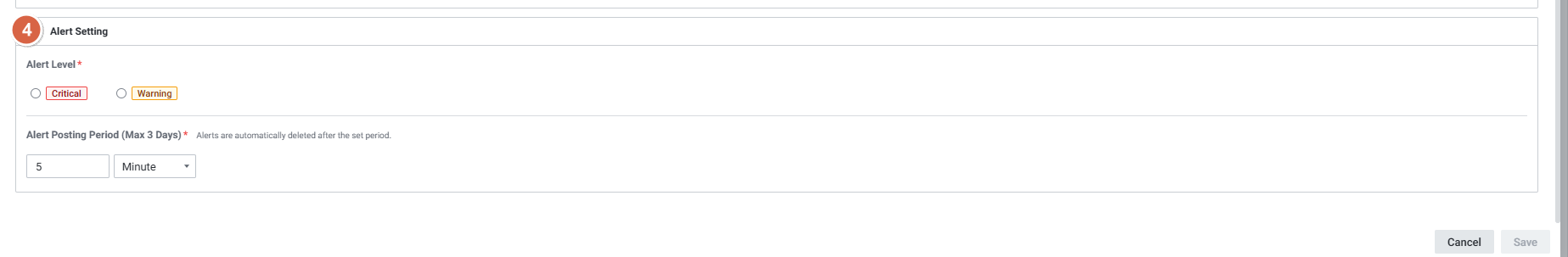 4Alert Posting PeriodAlert이 게시되는 시간을 설정합니다.