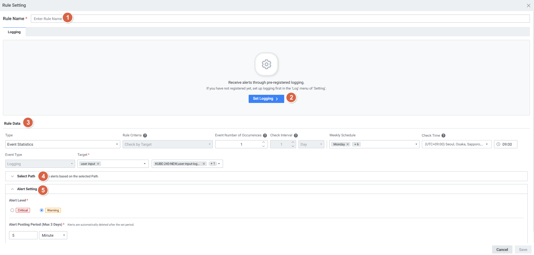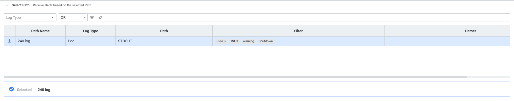 | 1 | Select Path | Alert을 수신할 Path를 선택합니다. |