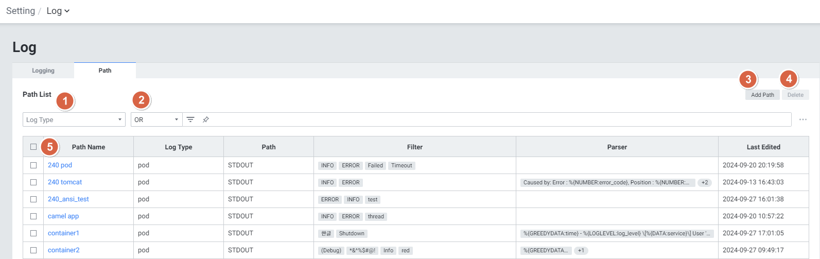 | 4 | Path File | 로그 파일 경로를 입력합니다. |