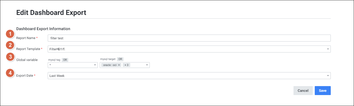 4Export Date리포트할 대시보드 데이터 수집 기간을 수정합니다.