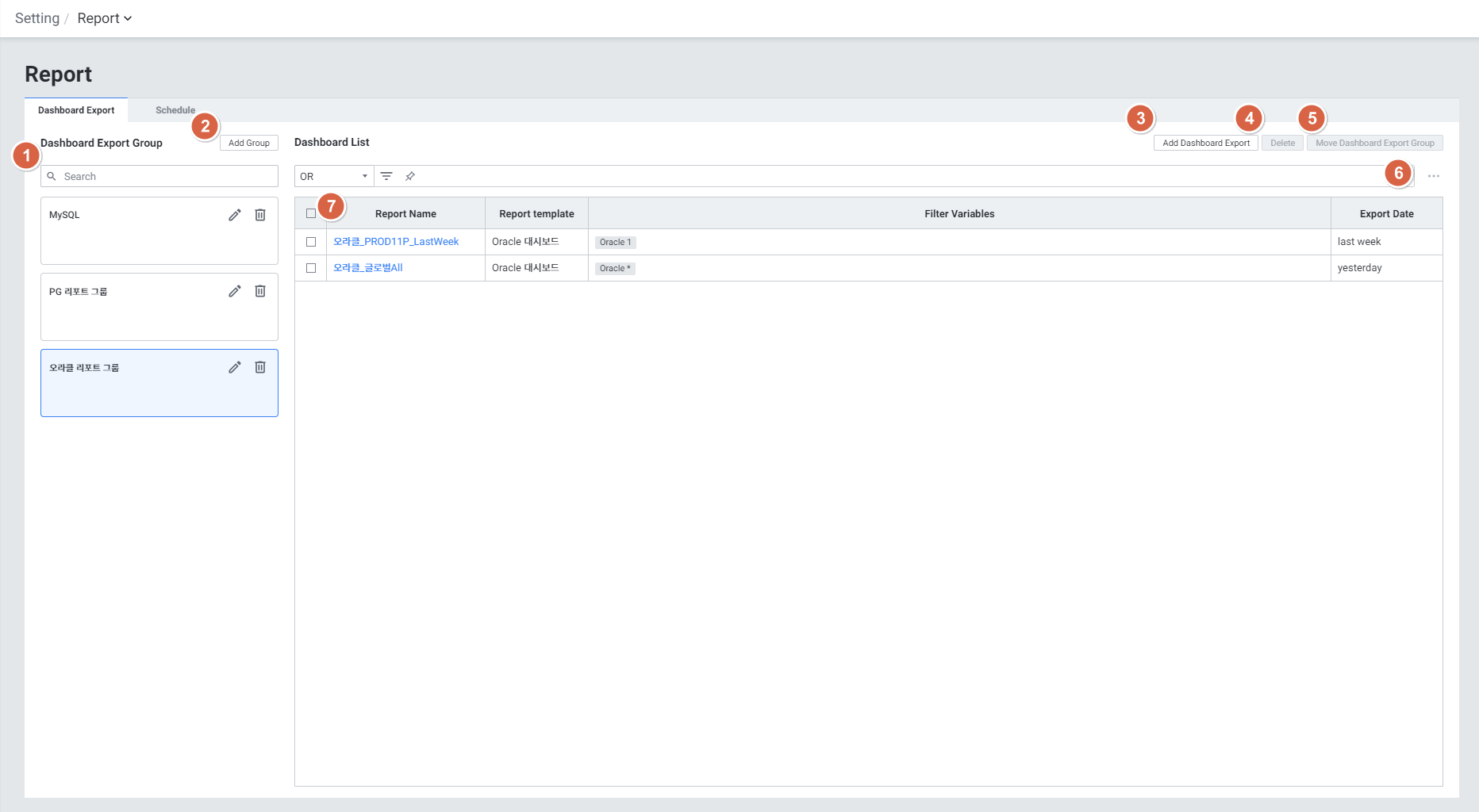 5Move Dashbord Export Group선택된 대시보드 리포트의 그룹을 변경합니다.