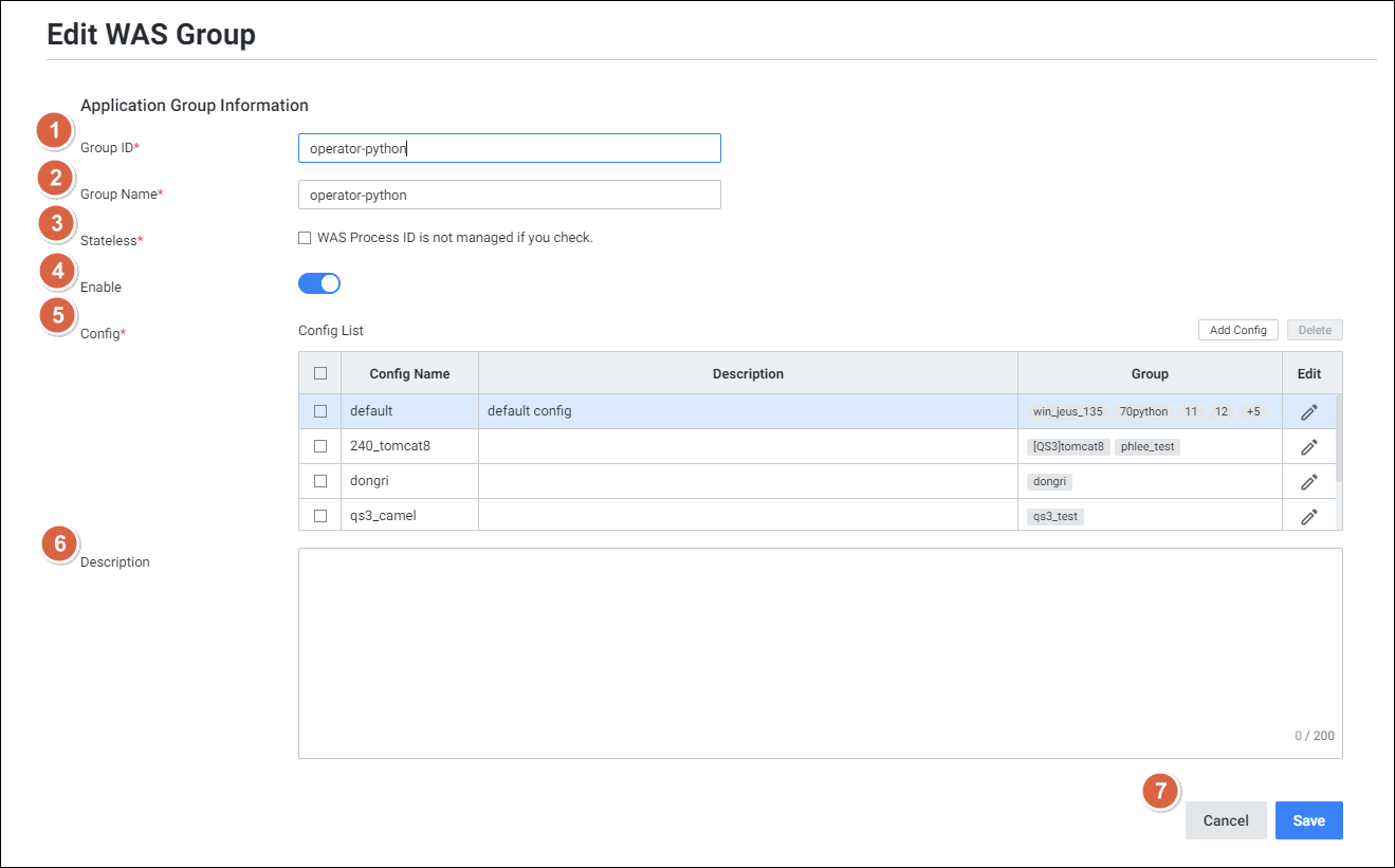 | 4 | Enable | WAS Group 활성화 여부를 선택합니다. |