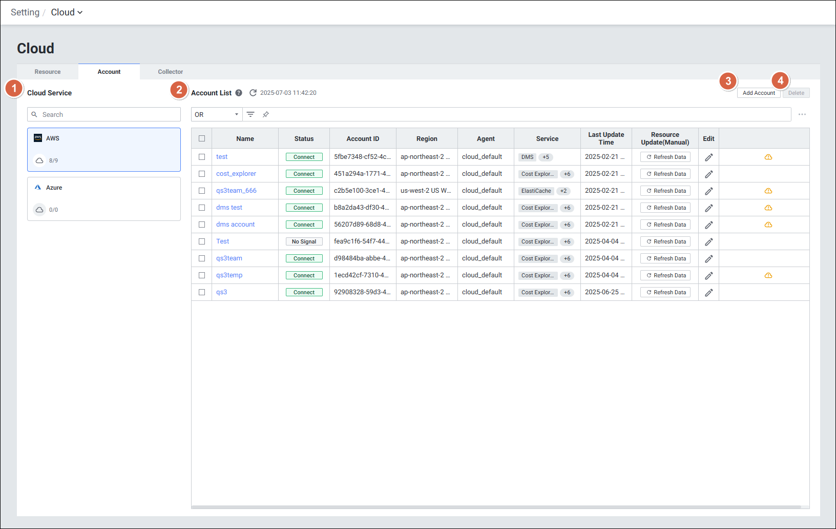 | 3 | Add Account | 클라우드 서비스 계정을 추가합니다. |